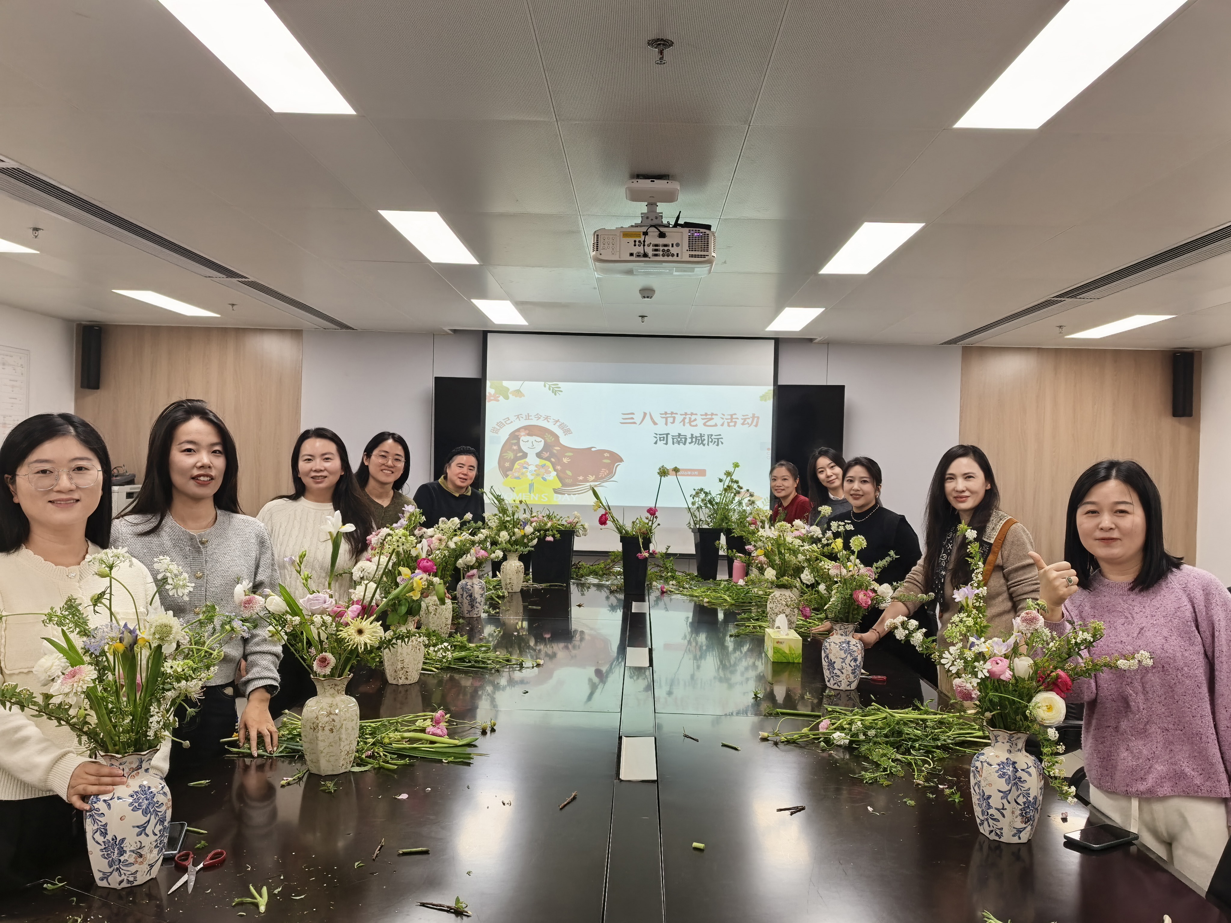物業(yè)公司組織開展了主題為“春暖三月 ‘花’生美好”插花活動。活動現(xiàn)場,女職工們巧妙搭配各色花材,修剪枝葉、調(diào)整角度,將春日生機融入作品中。一件件色彩繽紛、創(chuàng)意滿滿的花藝作品陸續(xù)呈現(xiàn),大家在花香中交流互動,合影留念,盡顯優(yōu)雅自信的巾幗風(fēng)采。